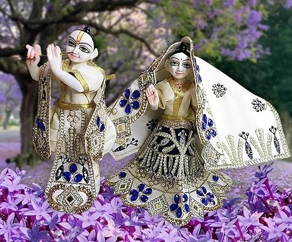 Radha Krishna Heavy Dress | Poshak for Yugal Jodi | Radhe Krishna Ji Poshak (White, Dress Size 2 Inches for 4 Inches Murti)