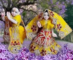 Radha Krishna Heavy Dress | Poshak for Yugal Jodi | Radhe Krishna Ji Poshak (Yellow, Dress Size 3 Inches for 5 Inches Murti)