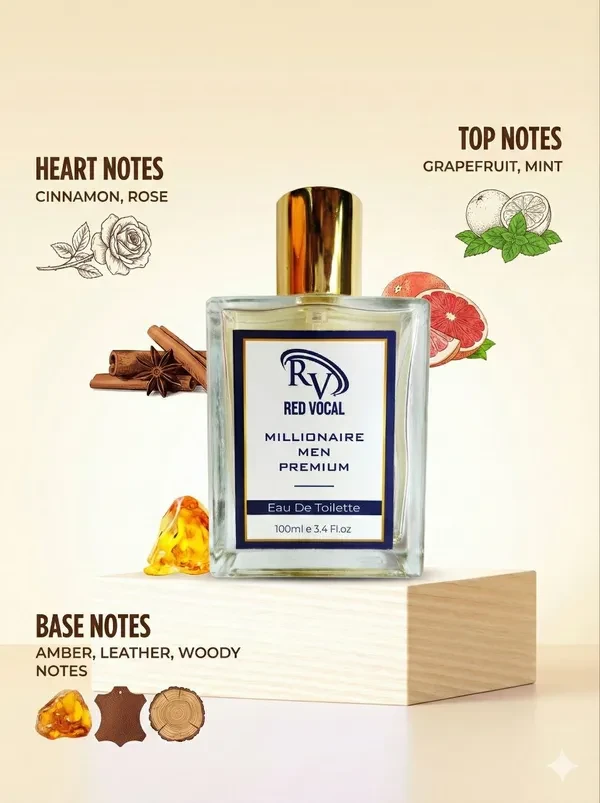 Red Vocal Millionaire Men Premium Perfume Eau De Toilette is a bold, sophisticated fragrance designed for confident men who make a statement wherever they go. Its fresh citrus opening, spicy floral heart, and warm, masculine base create a long-lasting scent that exudes power, elegance, and charm. Perfect for daily wear, office, or special evening occasions.