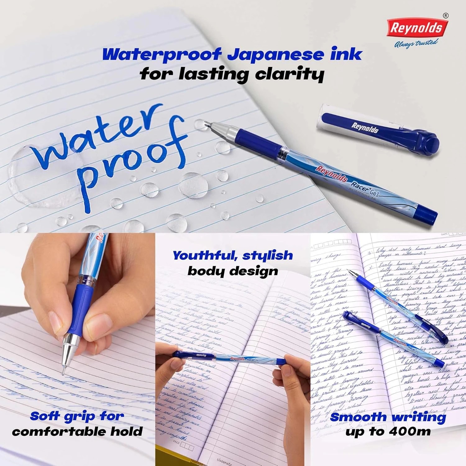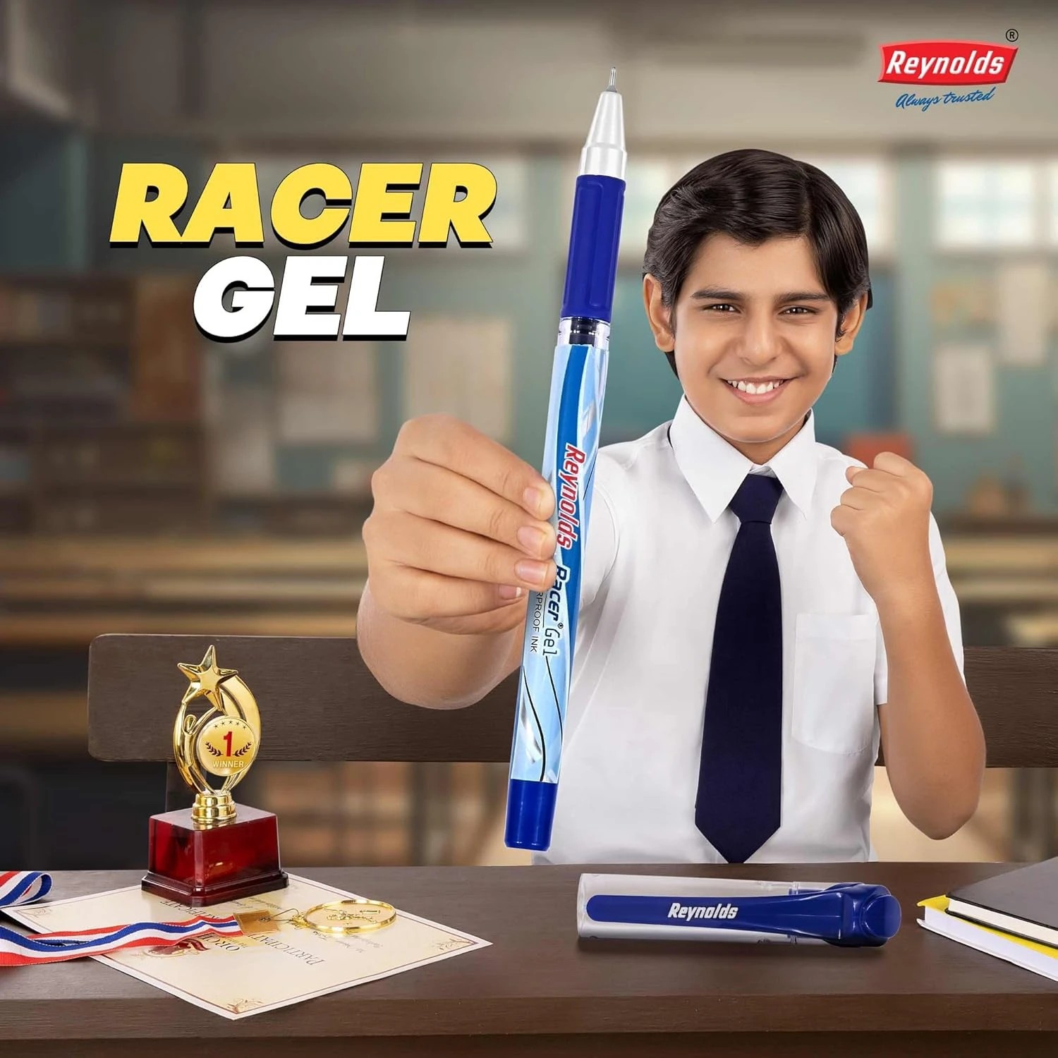 Reynolds RACER GEL Pen SET - 40 BLUE PENS WITH COMFORTABLE GRIP | BLUE GEL PENS FOR WRITING | PEN FOR STUDENTS & OFFICE STATIONERY | 0.5 mm TIP SIZE