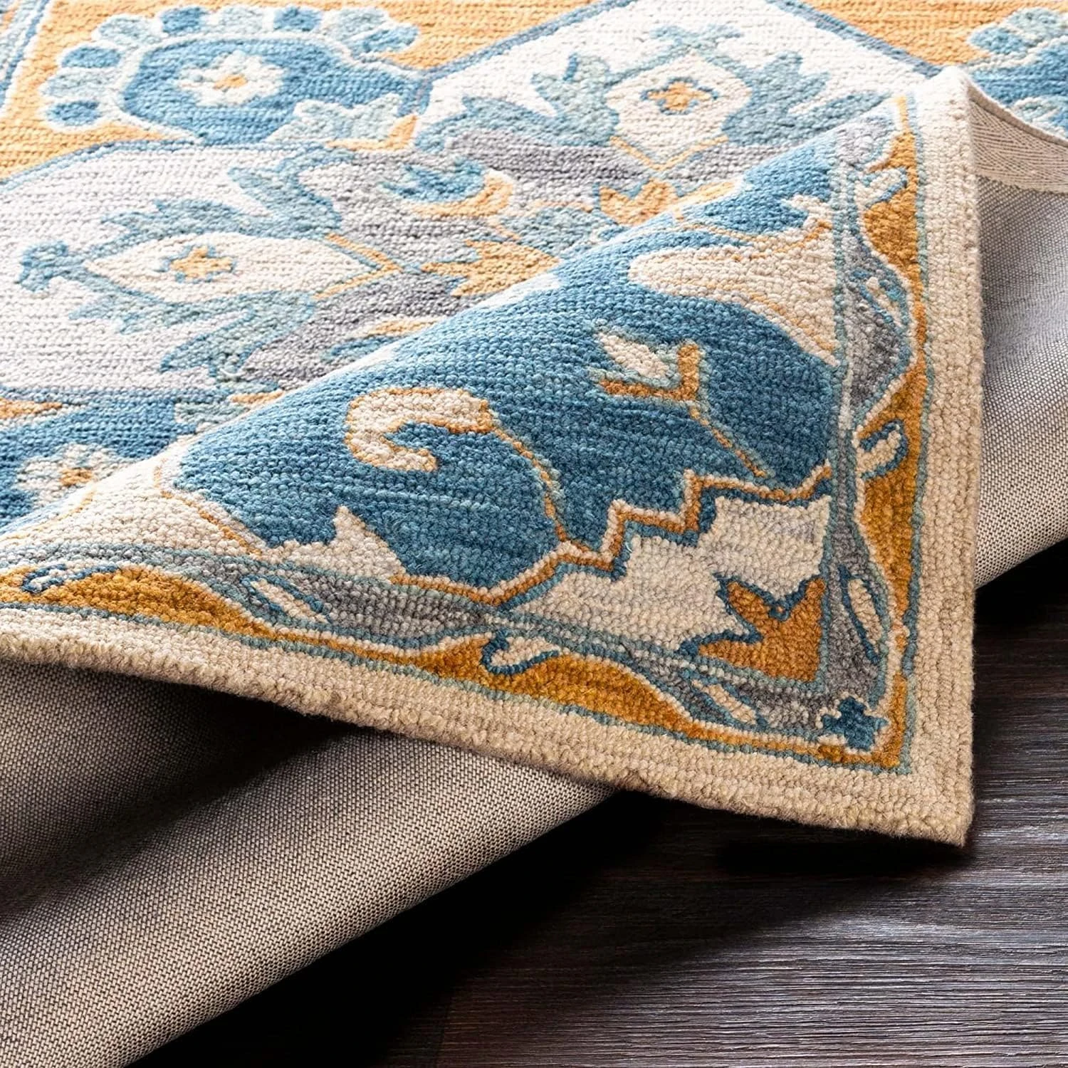 Expertly handmade woolen rug featuring loop