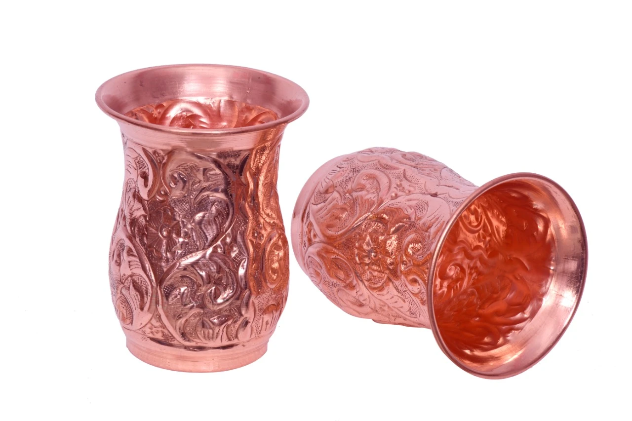 The smooth polished finish adds a rich shine, while the embossed texture provides a comfortable and secure grip. Designed for durability and long-lasting use, this copper glass is lightweight, easy to handle, and convenient for regular use. It is ideal for drinking water and serving guests in a stylish and traditional way.