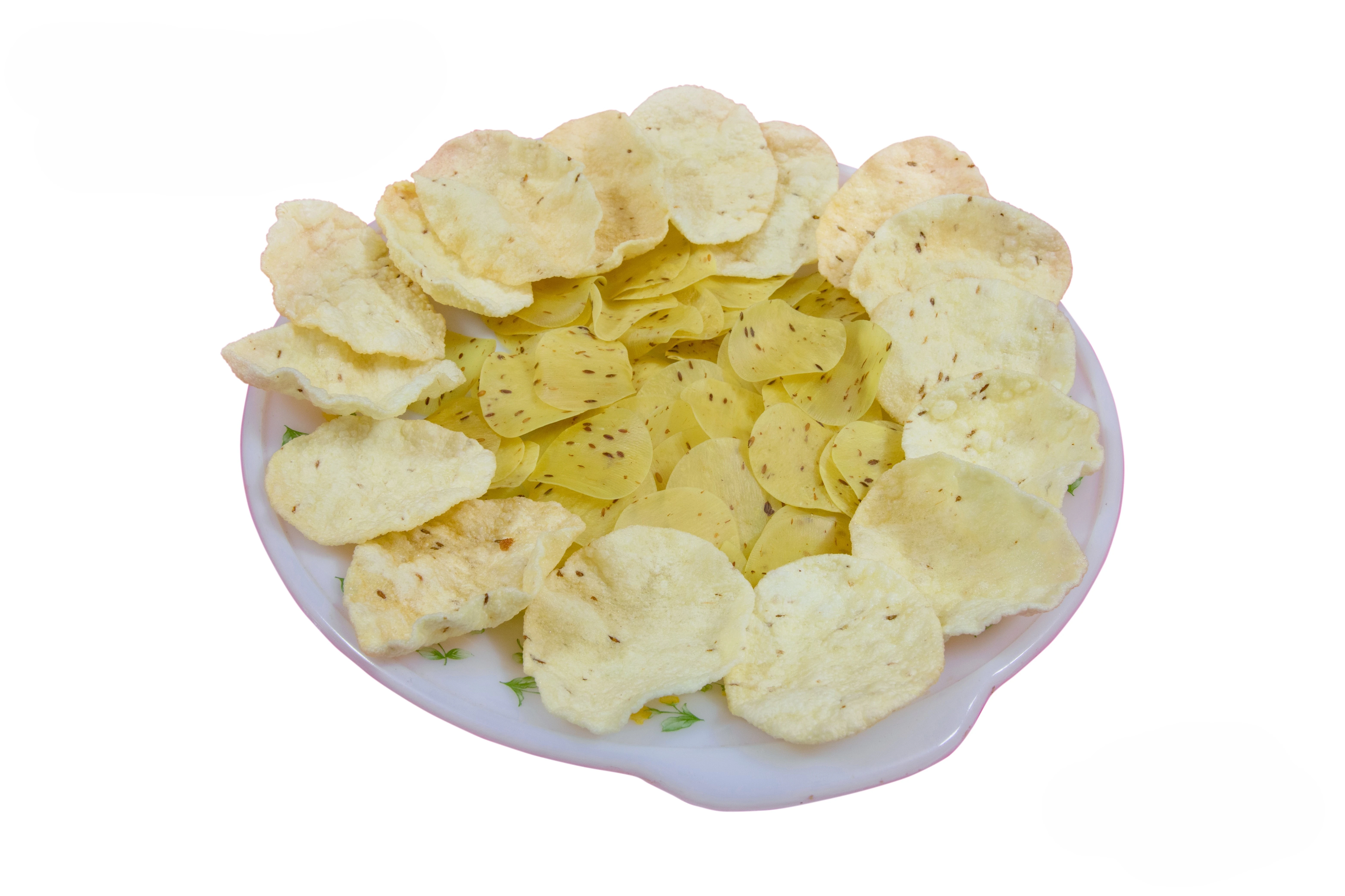 A RICE LIKE PAPAD WHICH IS SMALL LIKE CHIPS HAVING CUMIN SEEDS MADE FOR SNACKS