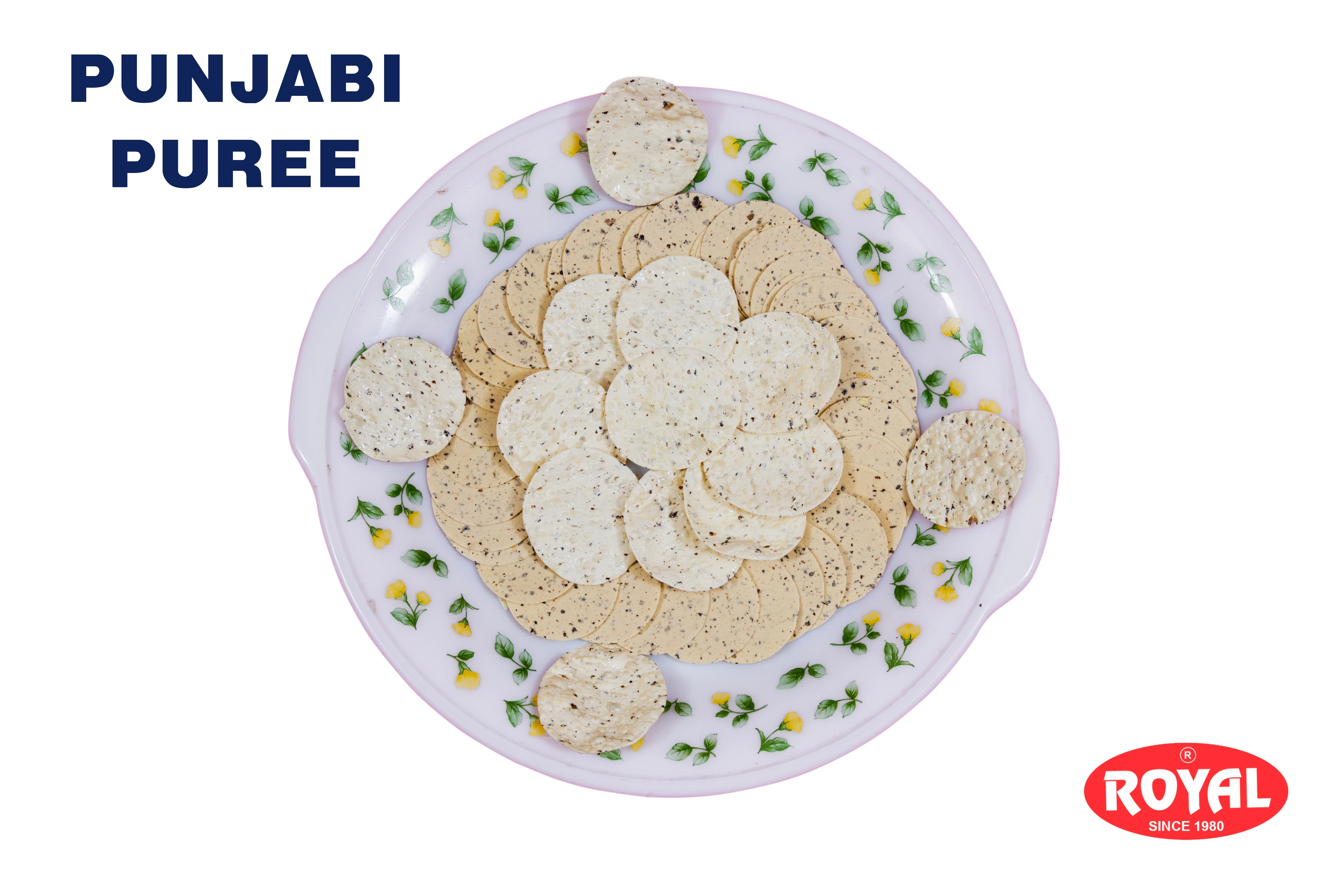 A PAPAD SHAPE LIKE PUREE HAVING DOUBLE PEPPER MADE FOR SNACKS OR STARTER