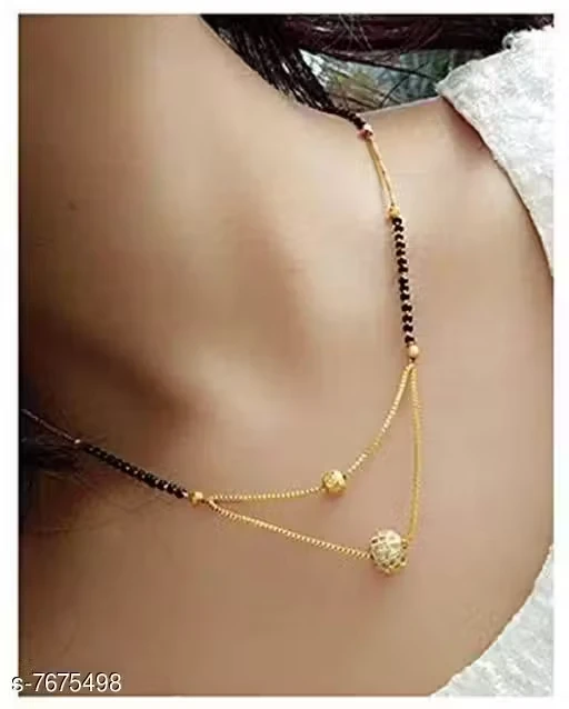 Crafted with fine detailing, this mangalsutra features a delicate chain with a beautifully designed pendant that reflects simplicity and elegance. The lightweight structure ensures all-day comfort, while the polished finish gives it a premium and attractive shine. It is designed to match both ethnic and modern outfits effortlessly, making it a versatile addition to your jewellery collection.
