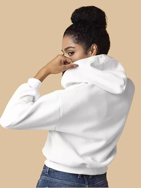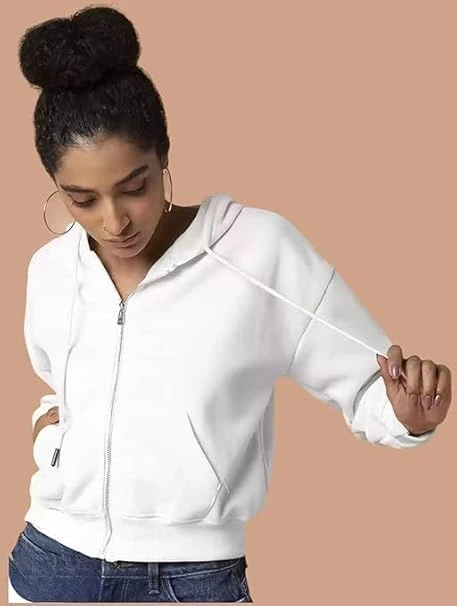 Soft Fleece Solid Long Sleeve Drawstring Crop Zipper Jacket Hooded Full Zip Up Sweatshirt for Women's Girl's Winter Wear Crop Hoodie | Color White