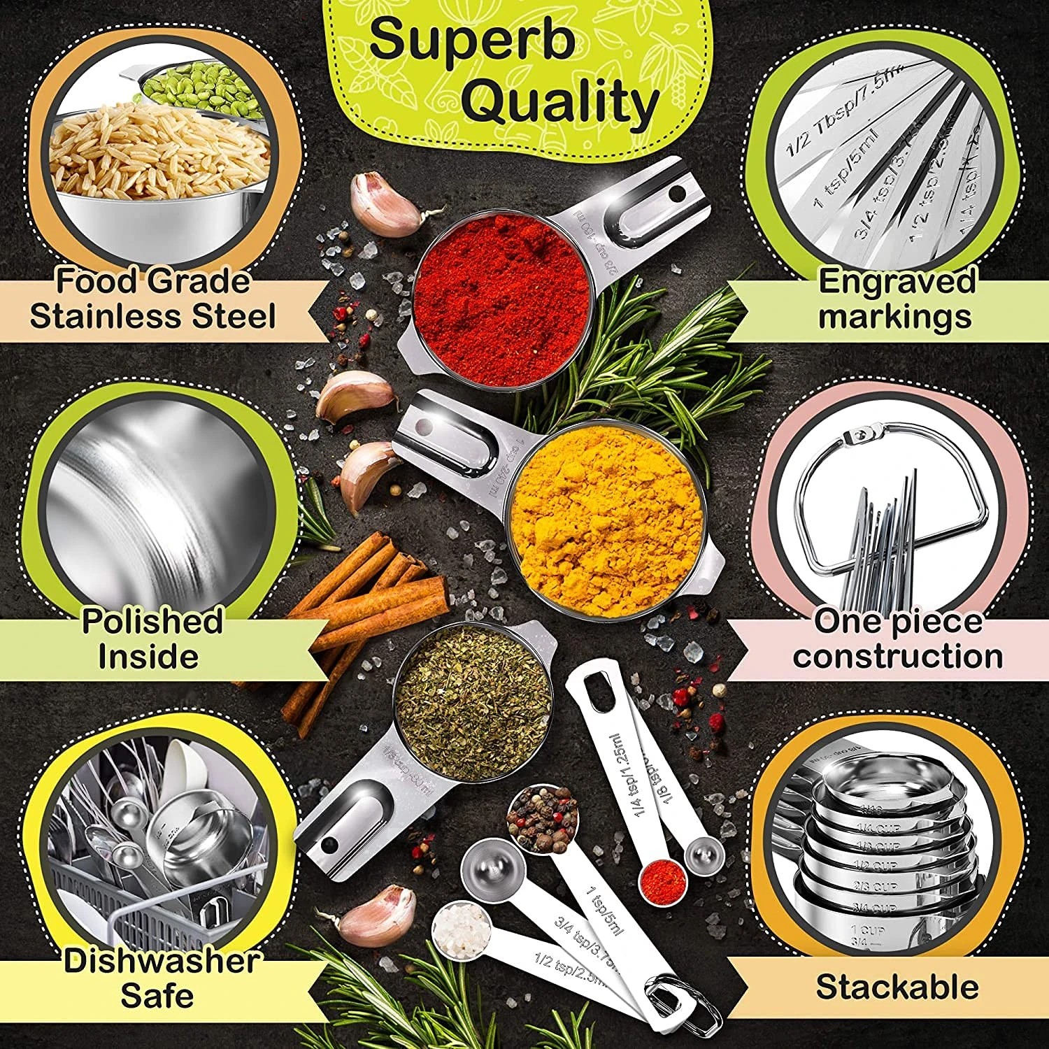 high-quality food-grade 18/8 stainless steel (304ss) with THICKNESS of