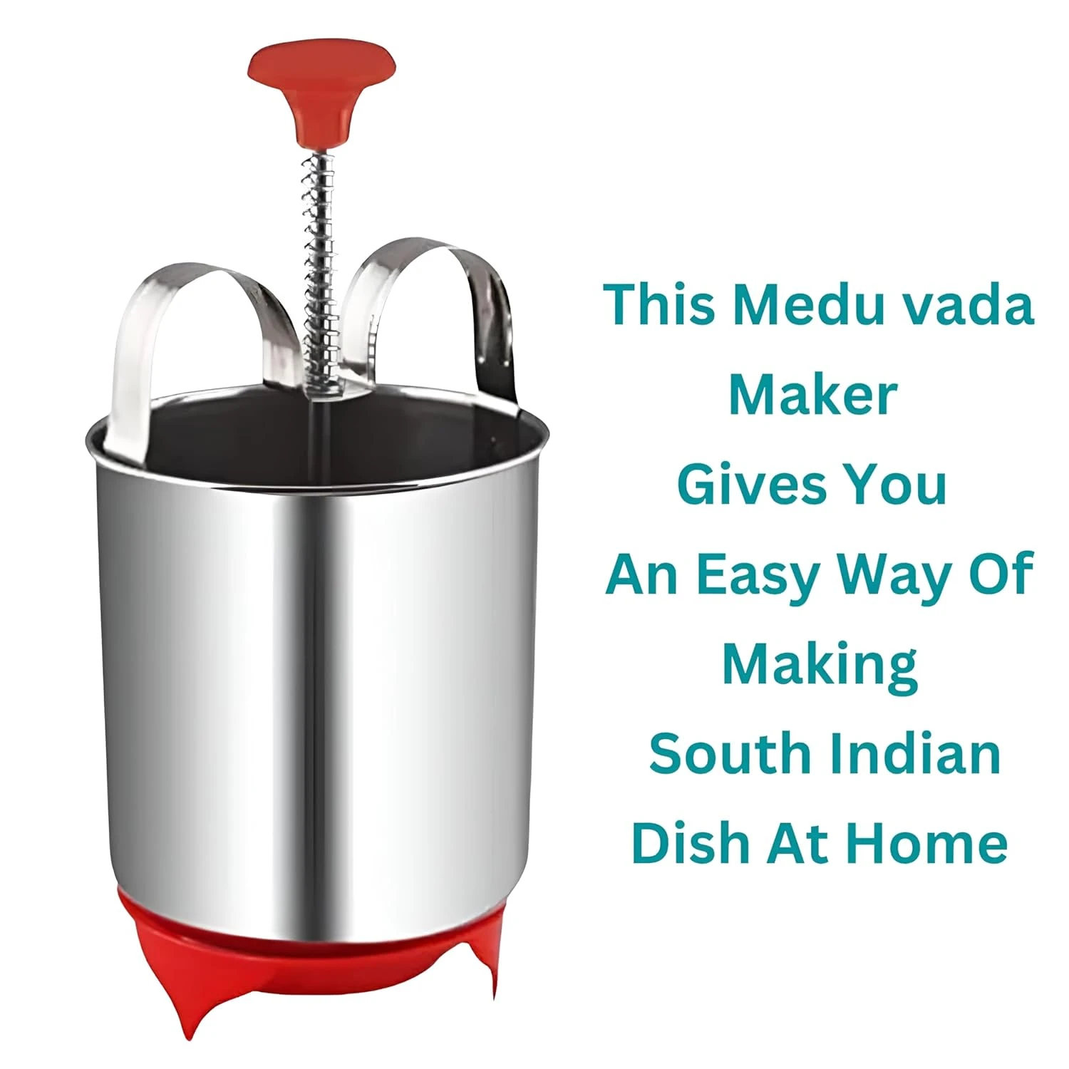 Stainless Steel Meduvada Maker - Heavy Duty & Rustproof Manual Press Medu vada Maker Machine with Stand for Perfect Vadas & Donuts, Ideal Menduwada Making Tool for Kitchen & Restaurant