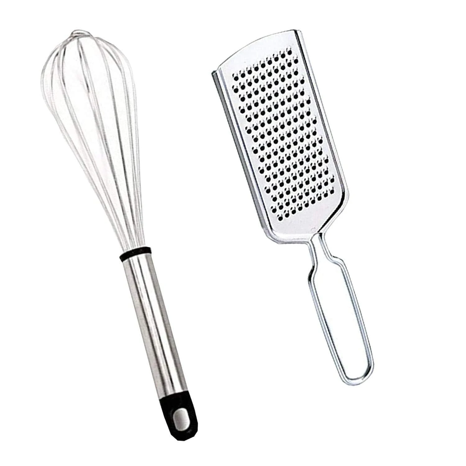 Pack of 2 essential kitchen tools including a sturdy stainless steel whisk and a compact grater for multiple cooking tasks