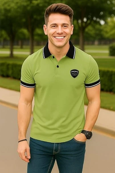 Talitha Fashion Classic Polo Shirt, Men's Cotton Rich Solid Polo Tshirt | Collar Tshirts | Half Sleeves | Plain-Regular Fit, Casual Wear Color Light Green