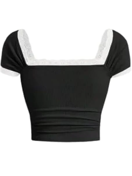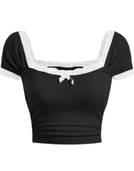 Talitha Fashion Half Sleeves Solid Designer Lace Lycra Top for Women's, Casual Fit Elegant Summer Blouse Top for Girls Regular Slevees | Breathable Fabric Color Black