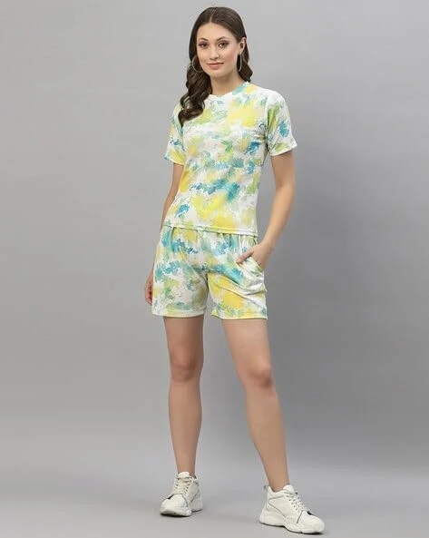 Talitha Fashion Women’s Cotton Half Pajama Set with Top & Pants Lycra Printed & Knitted Round Neck Nightwear Sets | Short Sleeve Nightsuite for Women and Girls Nightdress