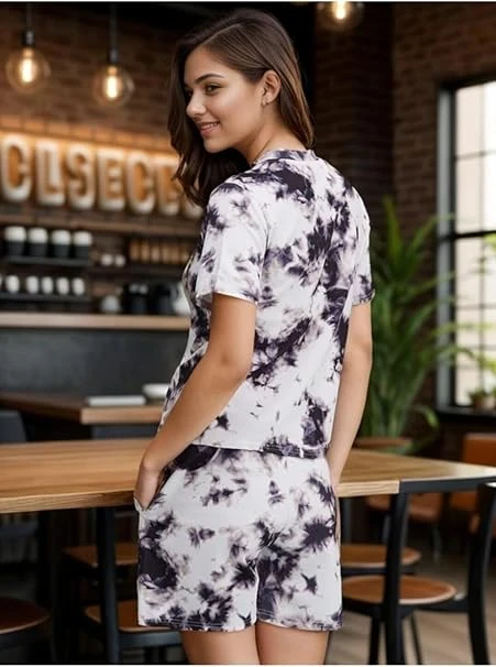 Talitha Fashion Women’s Cotton Half Pajama Set with Top & Pants Lycra Printed & Knitted Round Neck Nightwear Sets | Short Sleeve Nightsuite for Women and Girls Nightdress Color Black White