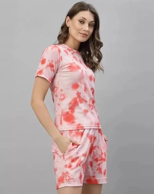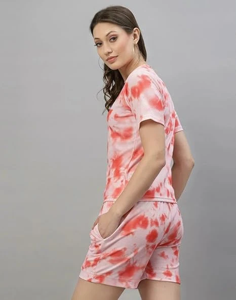 Talitha Fashion Women’s Cotton Half Pajama Set with Top & Pants Lycra Printed & Knitted Round Neck Nightwear Sets | Short Sleeve Nightsuite for Women and Girls Nightdress Color Orange