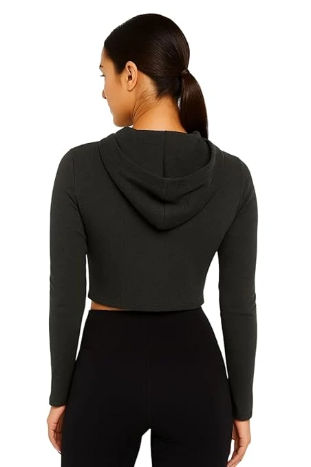 Talitha Fashion Women's Cropped Zip-Up Hoodie, Cotton Blend, Long Sleeve, Regular Fit, Casual Athletic Style t-Shirt