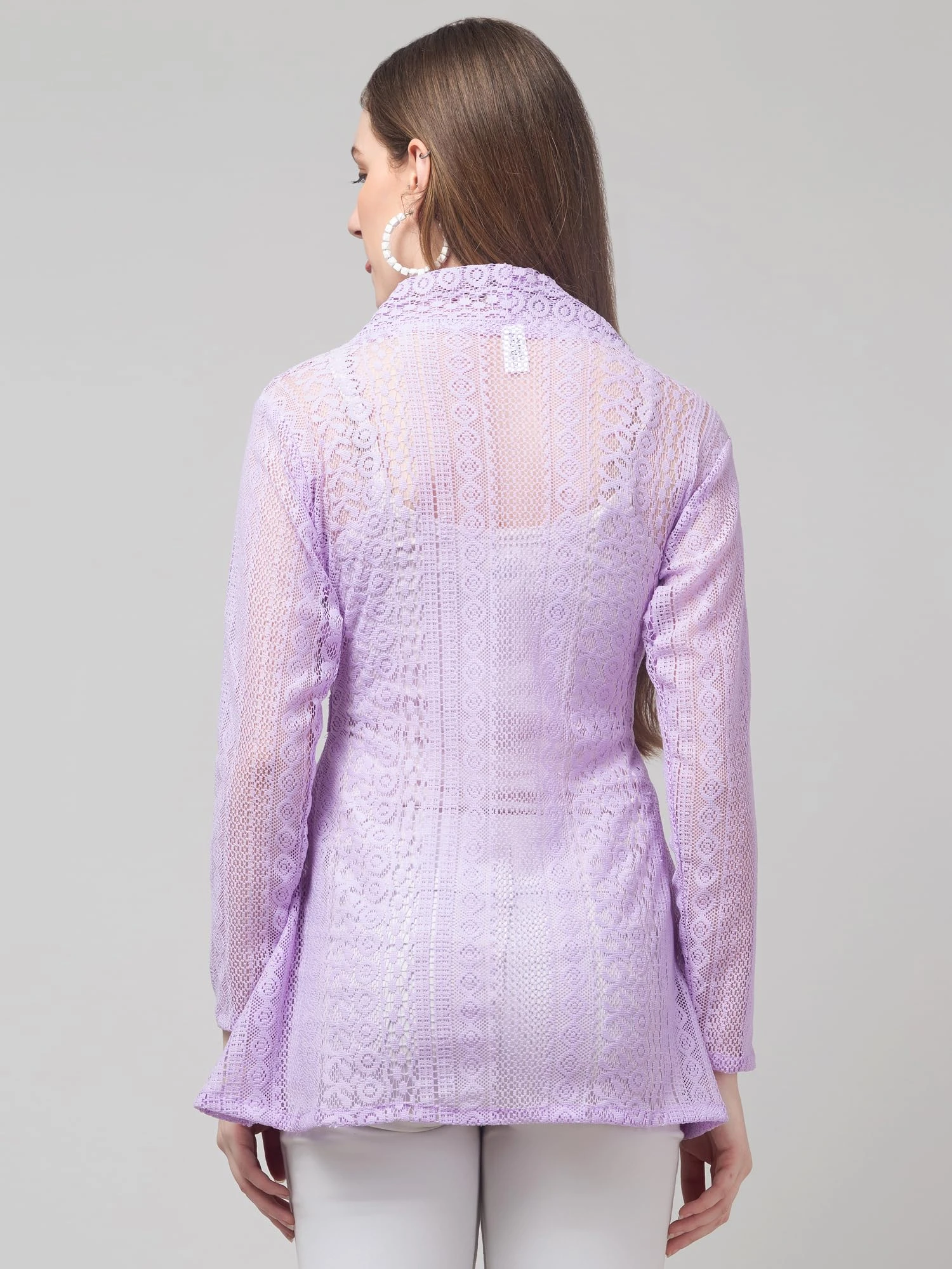 Made from premium sheer lace fabric, this shrug adds a sophisticated and feminine touch to any outfit. The delicate lace pattern enhances the overall appeal, making it perfect for both casual and dressy occasions.