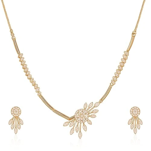 Plated AD Stone Jewellery Set for Women, Girls | Special Ocassion, Wedding, Engagement, Dating | Anti Tarnish | Anti Allergy | Necklace and Earring Set | Gift for Her