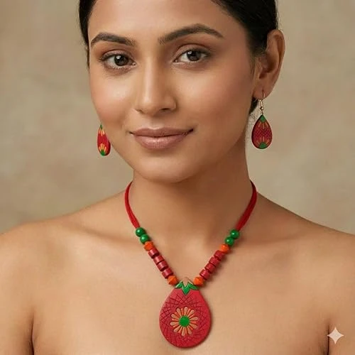 1. ✅ 𝐇𝐚𝐧𝐝𝐜𝐫𝐚𝐟𝐭𝐞𝐝 𝐓𝐞𝐫𝐫𝐚𝐜𝐨𝐭𝐭𝐚 𝐉𝐞𝐰𝐞𝐥𝐫𝐲: This Terracotta necklace and earring set is uniquely handmade by skilled artisans, ensuring an exclusive design. First choice of Fashion Jewellery for Women Girls. jewellery set for women latest design fancy.