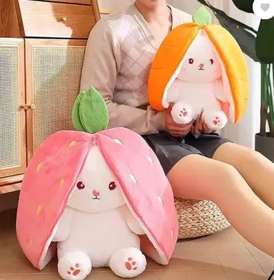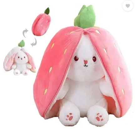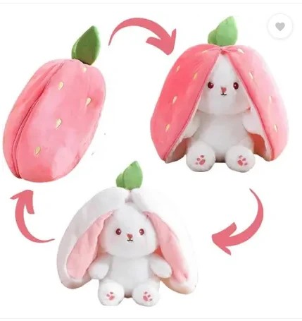 Toys Reversible Strawberry bunny soft toy giant size with zipper for boys/girls - 35 cm (Pink)