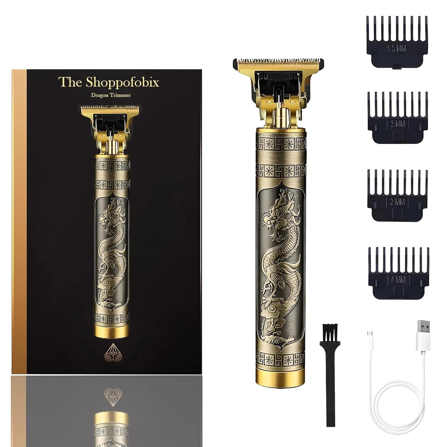 Trimmer Men Professional Cordless Hair Clipper Dragon And Buddha Style, Rechargeable Trimmer For Beard, Hairs, Moustache & Face, Electric T Blade Zero Gapped Shaving Machine With Women Reusable Face Razor (Gold)