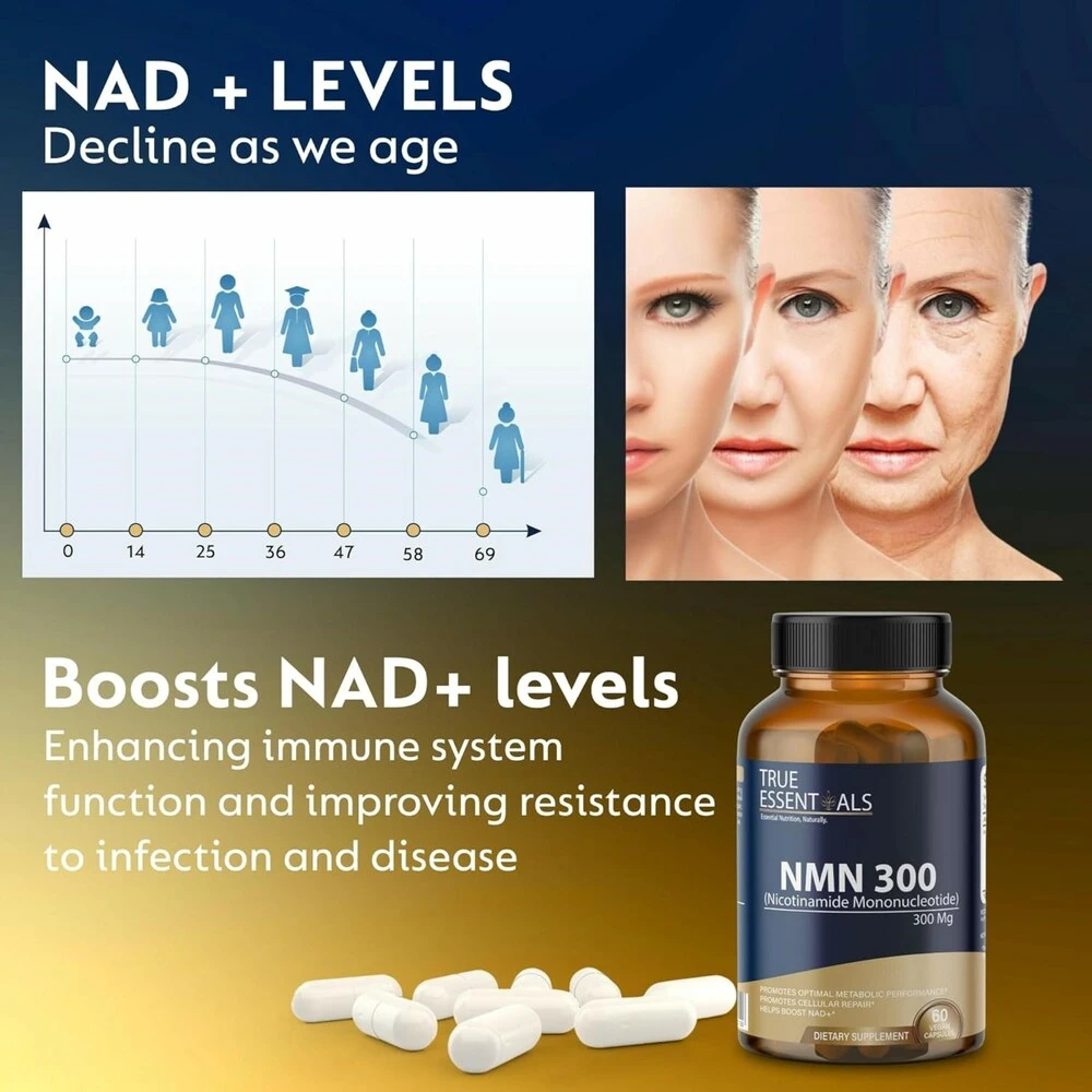 • True Essentials NMN SUPPLEMENT + Provides maximum absorption Supports Energy Levels And Physical Performance . Promotes Insulin Activity .Preserves Cognitive Function During Aging. Supports Healthy Cellular Metabolism