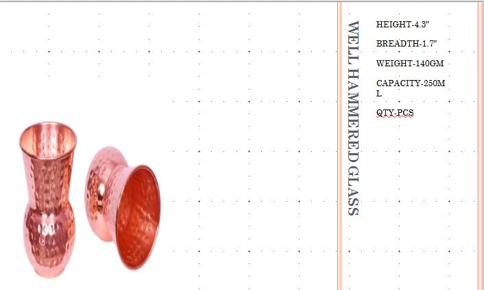 1. Unique Design Copper Glass. Height:-12(CM), Width:- 9(CM), Length:- 9(CM), Weight:-130(GRM).