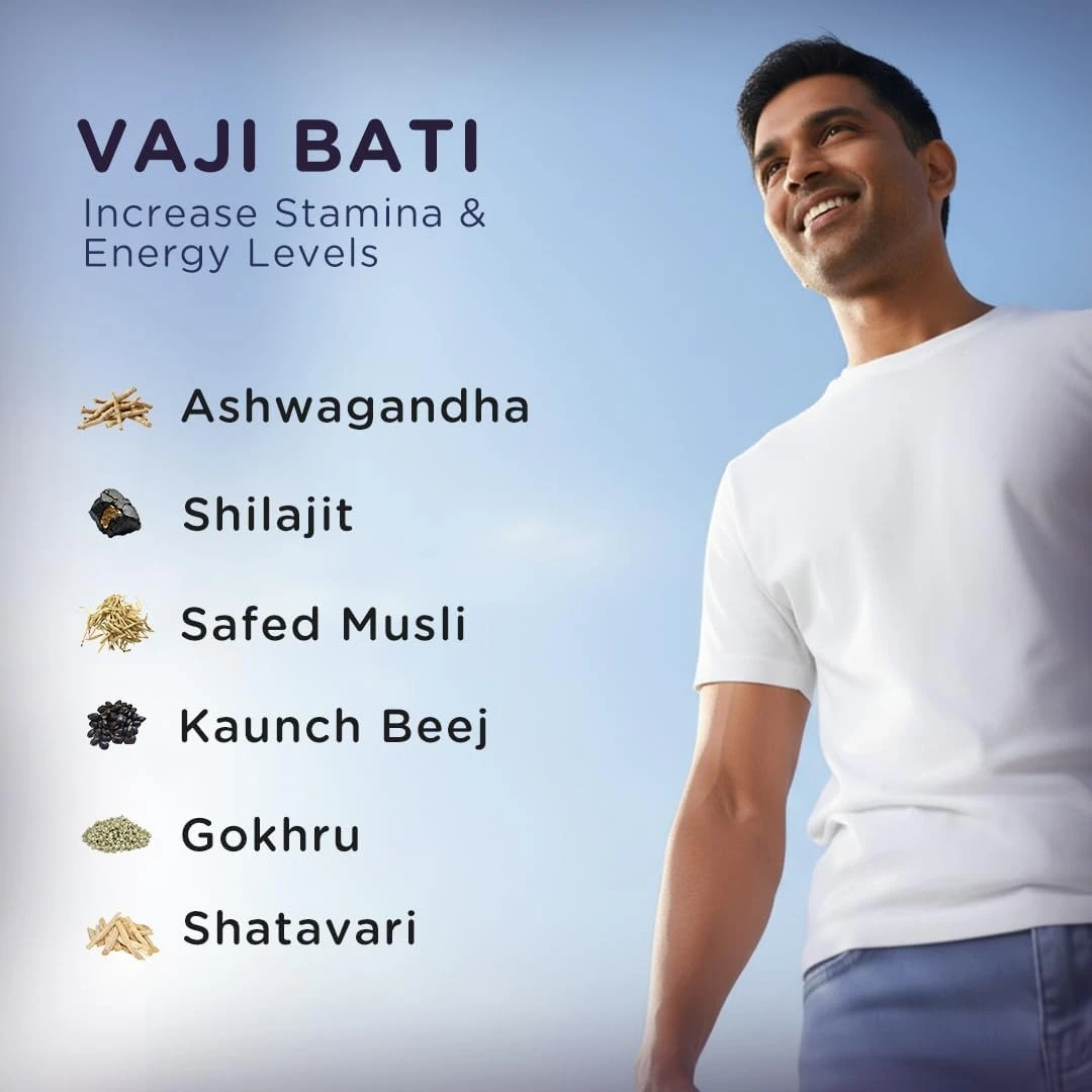 Vaji Bati | Ayurvedic Testosterone Supplement & Stamina Booster for Men | Increases Vitality, Strength & Performance | Improves Physical Health And Muscle Recovery - 30 Tablet