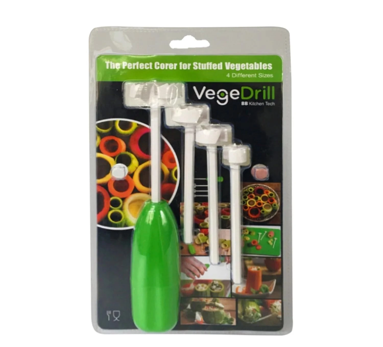 Vegetable Spiralizer Digging for Stuffed Vegetables,Vegetable Drill,Kitchen Tool & Gadget for Cooking, Manual Vegetable Slicer, Dishwasher Safe, White/Green Spiral Cutter Device Corer Set of 4 Pcs
