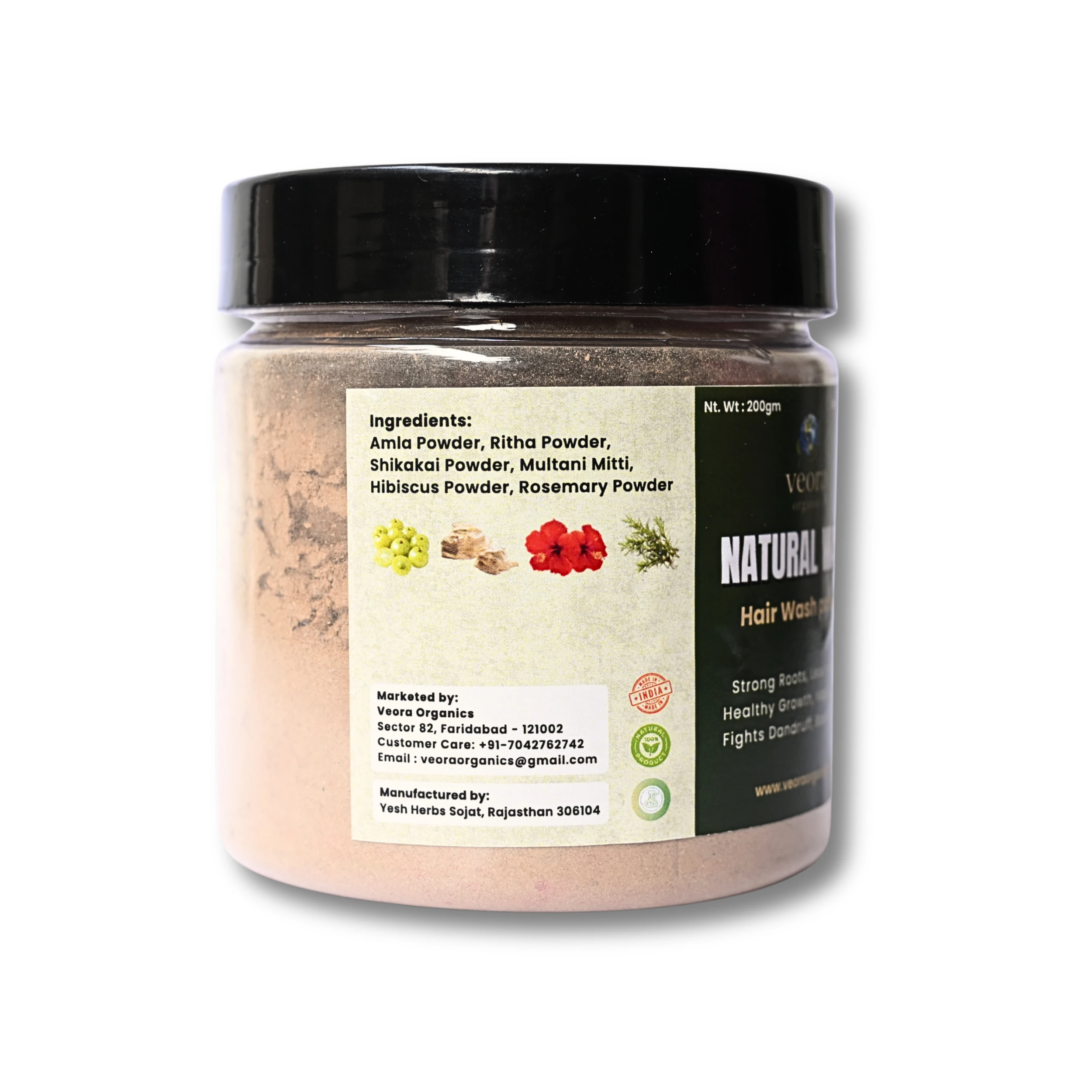 Give your hair the care it truly deserves with Veora Organics Herbal Hair Wash Powder, a natural blend of time-tested Ayurvedic ingredients. Crafted with the perfect mix of Amla, Reetha, Shikakai, Multani Mitti, Hibiscus, and Rosemary, this herbal formula gently cleanses your scalp while nourishing every strand from root to tip.