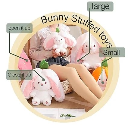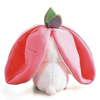 ViNee Creations Soft Toys Cartoon Characters Plush Toys Best Soft Toy Animal Stuff Toy for Kids (Bunny Carrot Strawberry Pillow 18cm)
