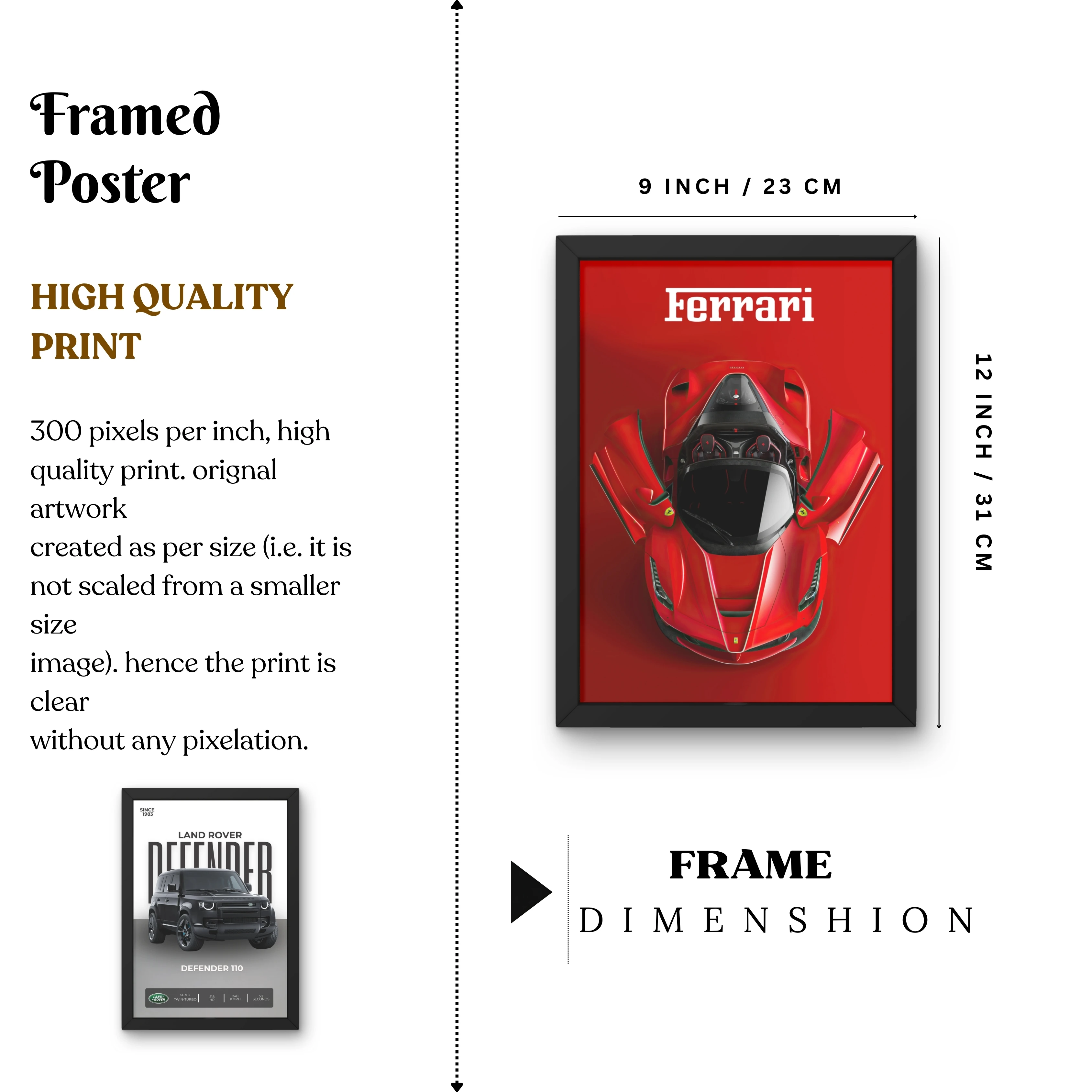 VK Craft Creations Wall Frame Poster | Framed Artwork for Living Room & Bedroom Décor | Bold Automotive Wall Art Gift for Men | Boys & Car Enthusiasts, 12 x 9 inch Pack of 1 (Style 50)