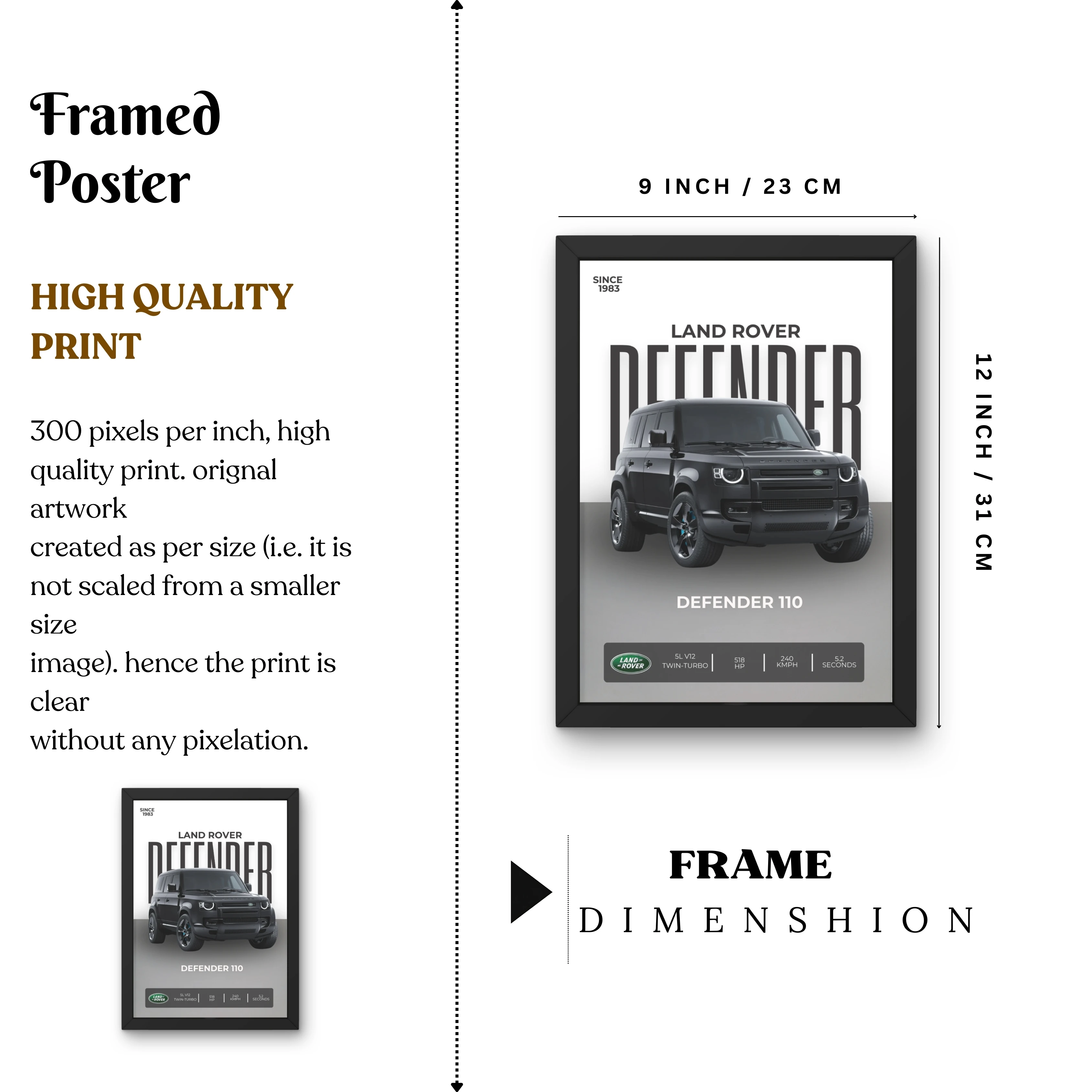 VK Craft Creations Wall Frame Poster | Framed Artwork for Living Room & Bedroom Décor | Bold Automotive Wall Art Gift for Men | Boys & Car Enthusiasts, 12 x 9 inch Pack of 1 (Style 50)