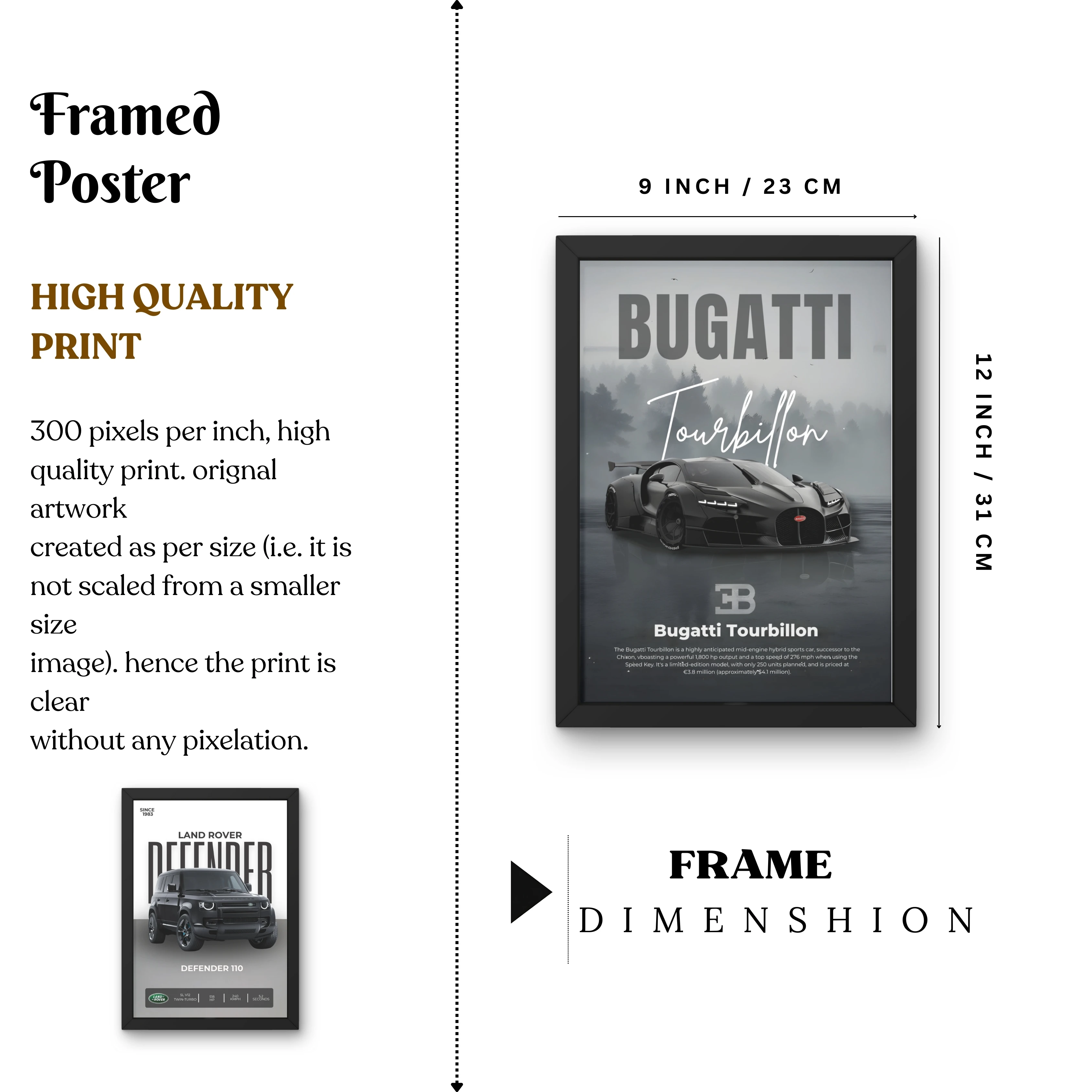 VK Craft Creations Wall Frame Poster | Framed Artwork for Living Room & Bedroom Décor | Bold Automotive Wall Art Gift for Men | Boys & Car Enthusiasts, 12 x 9 inch Pack of 1 (Style 49)