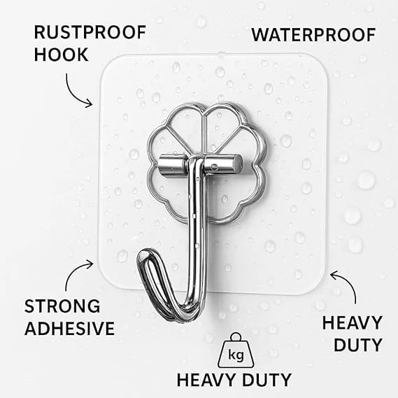 Wall Hooks - Heavy Duty Hooks for Wall Heavy Items Nail Free Wall Hanger Hook Without Drilling – Sticky Wall Hooks for Hanging Towel, Coat & Key (Flower Hook, Pack of 10)