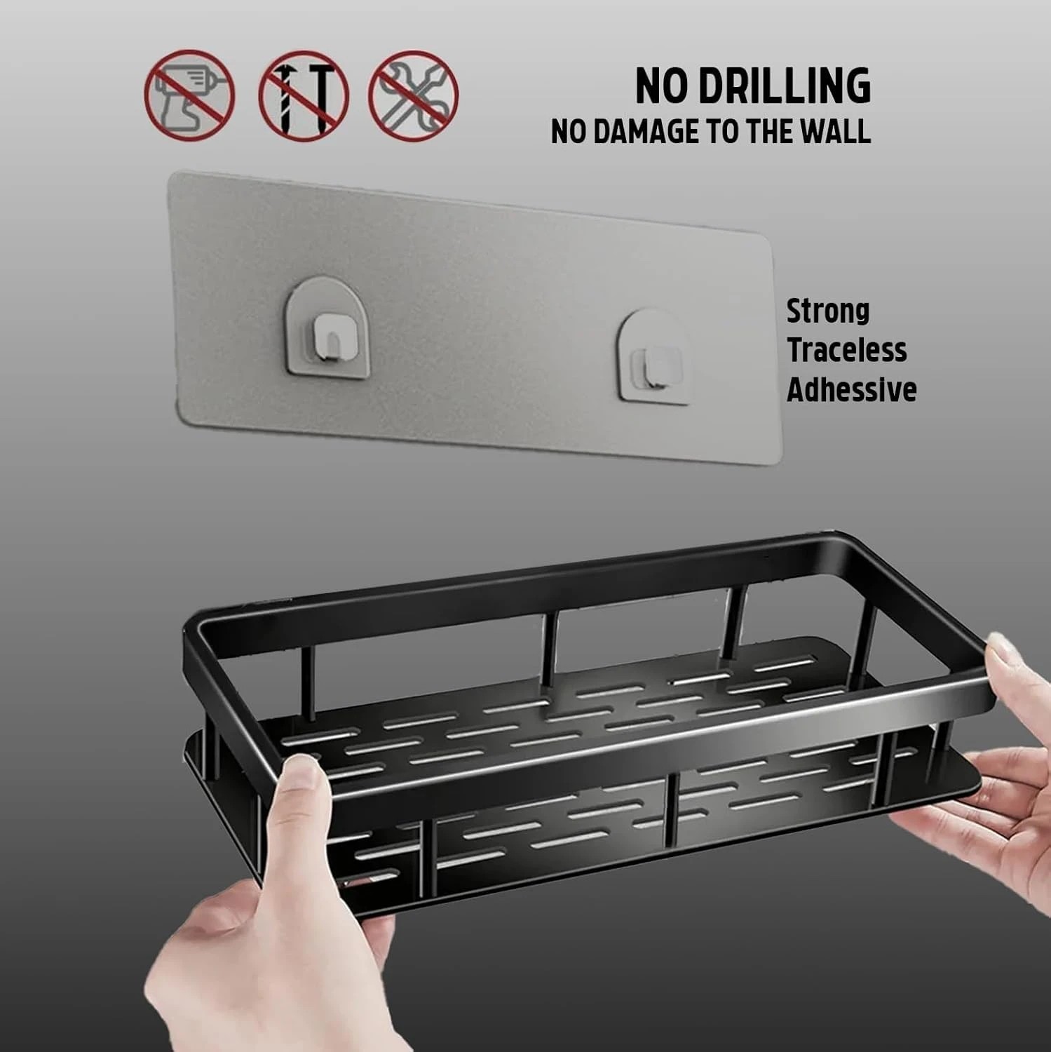 Wall Mounted Self-Adhesive Bathroom Shelf/Kitchen Rack & Holder/Soap Holder/Storage Organizer Rack - Bathroom Accessories (Material- Plastic, Black, Pack of 1)