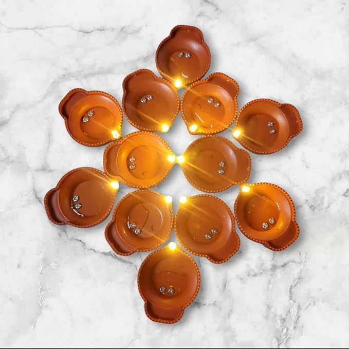 1. Stunning LED Diya Set of 24: This collection includes 12 beautifully designed LED Water diyas for diwali, radiating a warm, inviting glow—perfect for festivals, special occasions, or adding charm to your everyday decor.Transform your Diwali celebrations with our exquisite water sensored diyas, designed to create a mesmerizing glow that elevates any festive setting, your mandir or pooja space during Deepawali.
