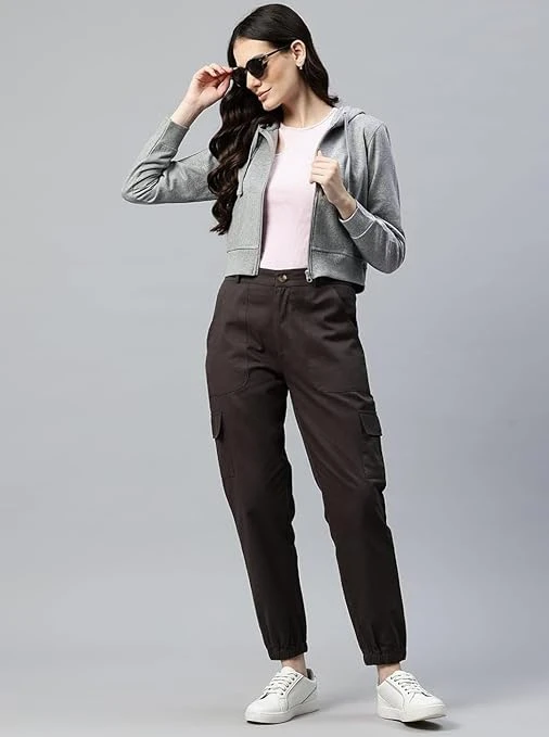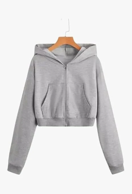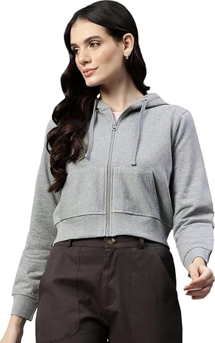 Winter Wear Solid Crop Zipper Jacket Hooded Solid Fleece Crop Zipper Hoodie Sweatshirt | Long Sleeves Winter Wear for Women's with Kangaroo Pocket