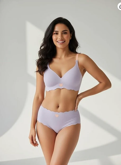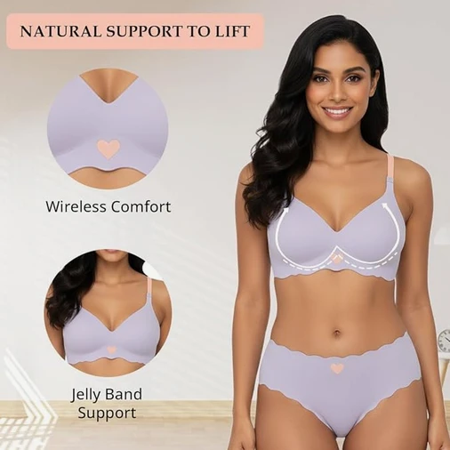 Women Bra Panty Set Soft Natural Support Seamless Backless Summer Bra Panties Set | Adjustable Straps and Heart Design Lingerie Set | Women's Suit Push-Ups Sports Cushioned Underwear Bra Set