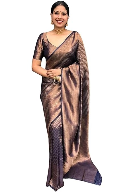 Women's Kanjivaram Soft Silk Saree With Blouse Piece Color Coffee Blue