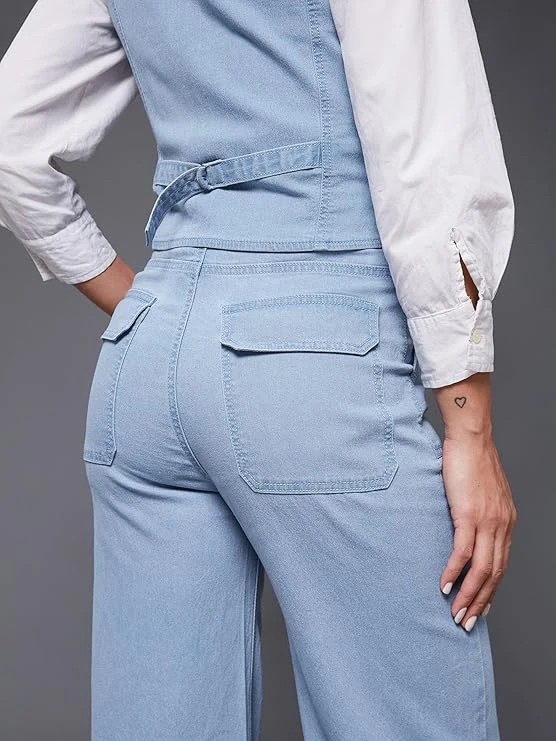 Women's Regular Fit Mid Rise Regular Length Denim Dungaree Size Large Color Light Blue