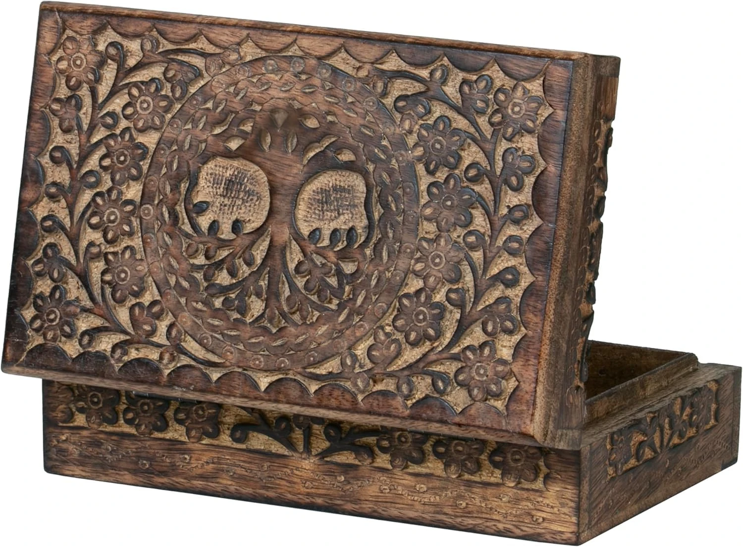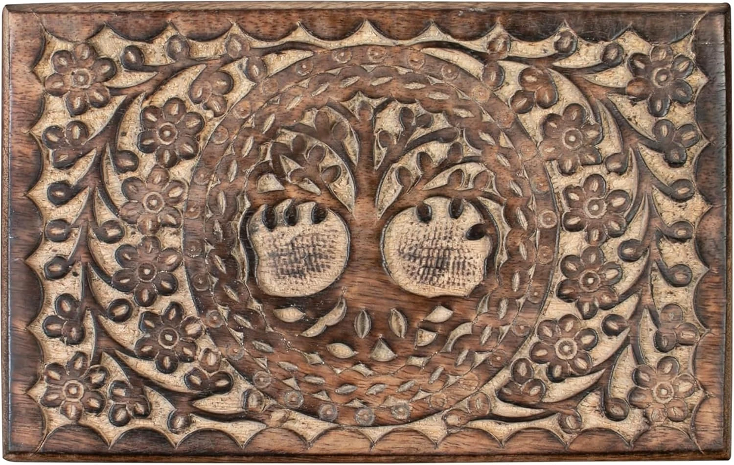 Handmade Wooden Keepsake Storage Box Jewelry Trinket Holder Organizer Floral Hand Carvings with Brass Inlay 8 inch (8.0x5.0 inch_RG0112)