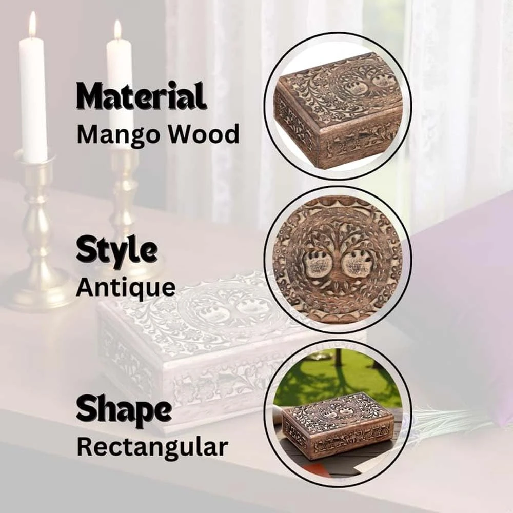 Wooden Decorative Box with Life of Tree Carving - Antique Design for Sister Birthday Gifts, Unique Gift Items For Women Birthday Unique, wooden Handmade love Gift box