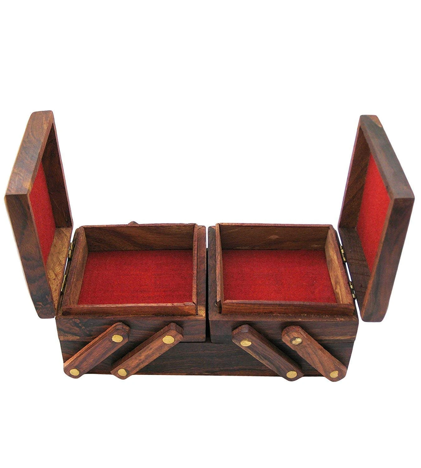 This stunning wooden jewellery box for women features intricate Jali brass work, perfect for storing your treasures.