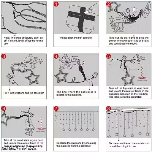 Name: X Pulse 138 LED 10 Stars 8 Flashing Modes /Star Curtain String Lights (Star Light Warm Yellow,Set of 2,Corded electric,Plastic)